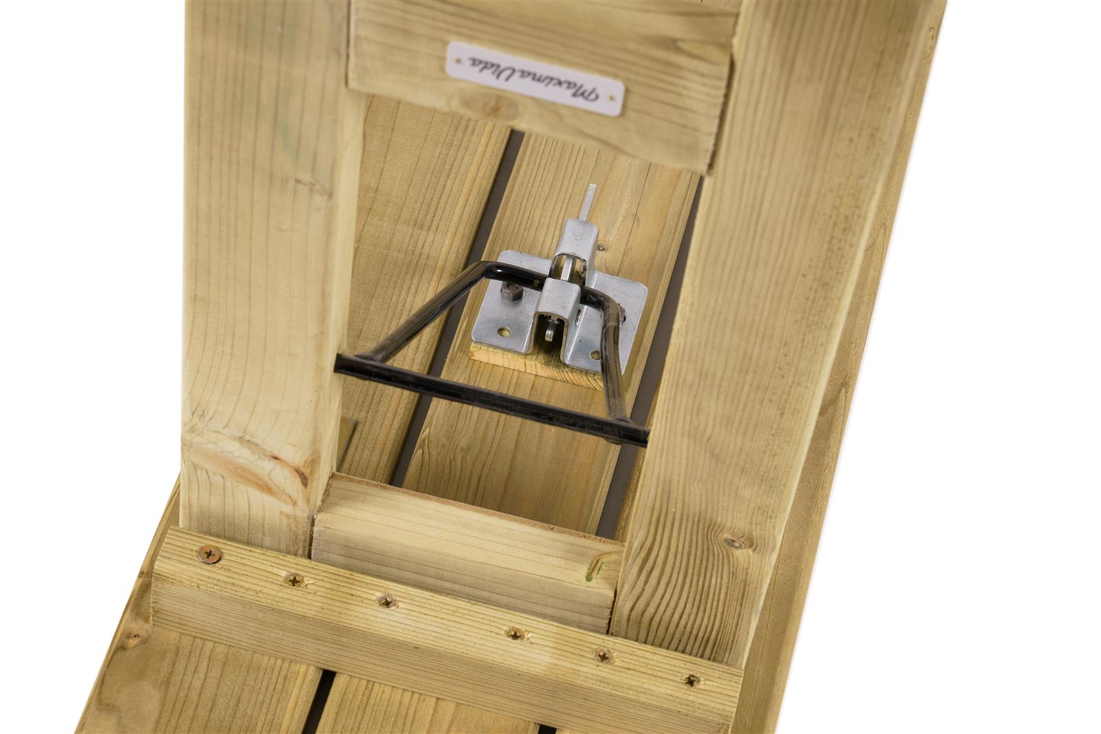 De inklapbare picknicktafel Vilnius 200 cm is gemaakt uit ca. 3 cm dik geimpregneerd hout. De schroeven, die gebruikt worden om de planken op het onderstel te bevestigen liggen gelijk met de hoogte van het hout. Dit zorgt ervoor dat je lekker zit en niet met je broek achter de schroef blijft hangen. Nog een voordeel? Het maakt makkelijker schoon.