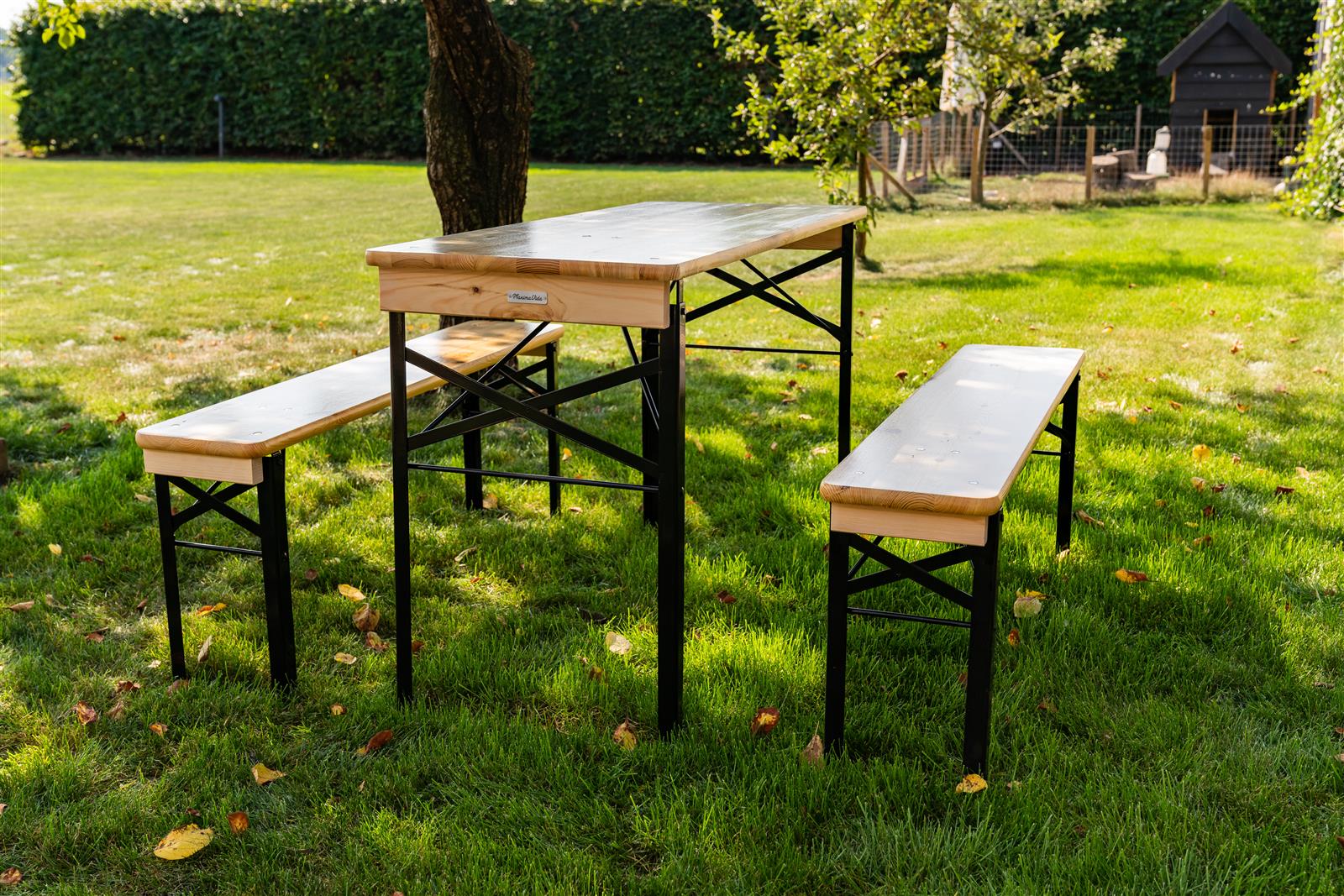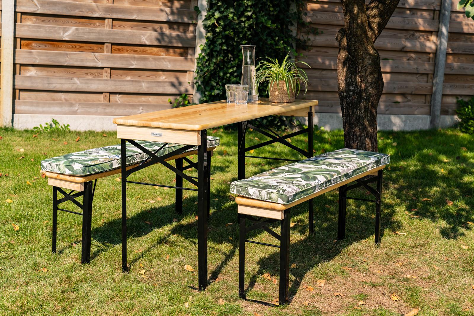 MaximaVida klappbarer Picknicktisch Berlin 120 cm, versehen von Klarlack