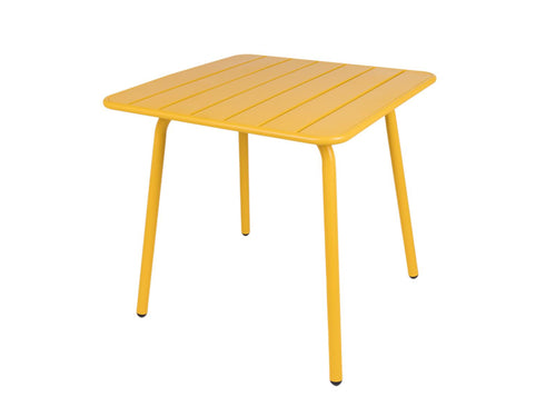 MaximaVida square metal garden table Max 80 cm x 80 cm yellow ochre