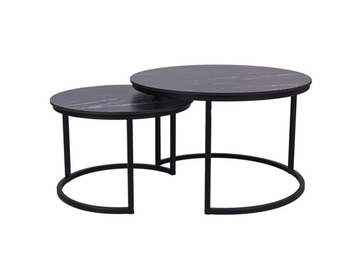MaximaVida round coffee table set Firenze XL 75 and 58 - black HPL marble look