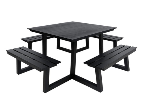 MaximaVida square aluminium picnic table Dex 215 cm black – easy entry