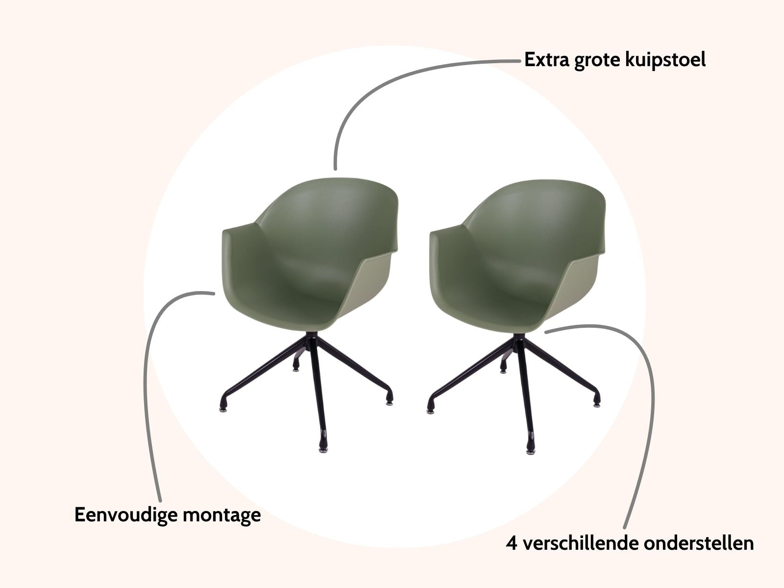MaximaVida dining room chair Cuyp XXL olive green swivel frame chair legs - 2 pieces