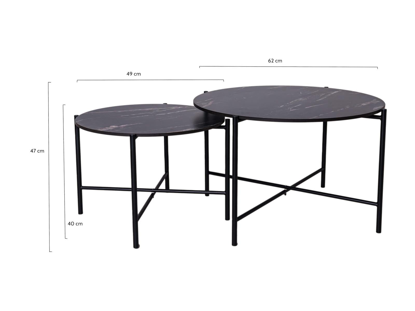 MaximaVida cross-leg coffee table set Firenze 62 and 49 cm - black marble look