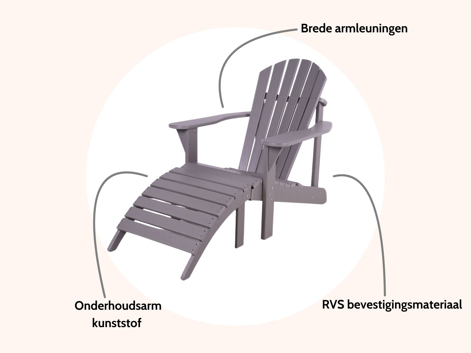 MaximaVida polywood Adirondack garden chair with footstool Montreal grey – luxurious version