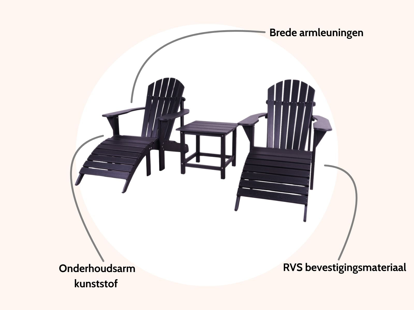 MaximaVida plastic Adirondack garden chair set Montreal black – luxurious design