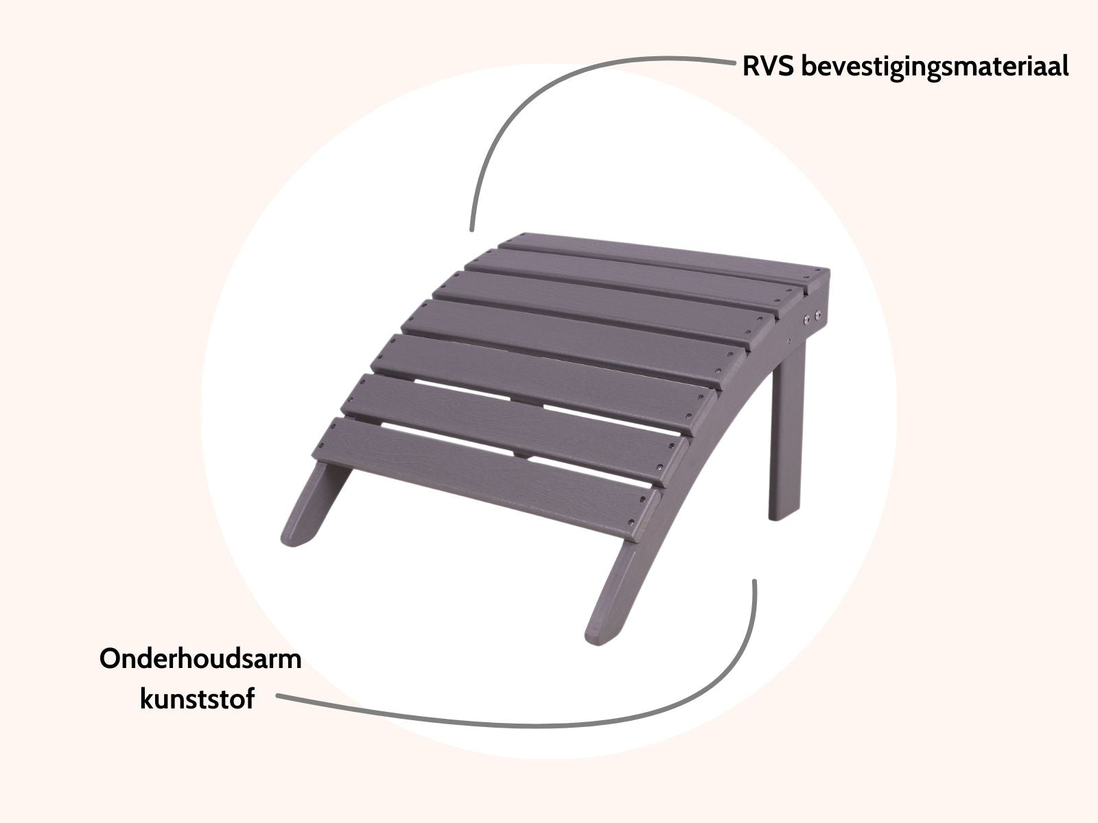 Polywood kan in de zon verkleuren en licht kromtrekken net als alle andere kunststof buitenproducten. Het onderhoud van het polywood voetenbankje beperkt zich tot regelmatig schoonhouden, dit kan eenvoudig en goedkoop met HG kunststof intensief reiniger.
