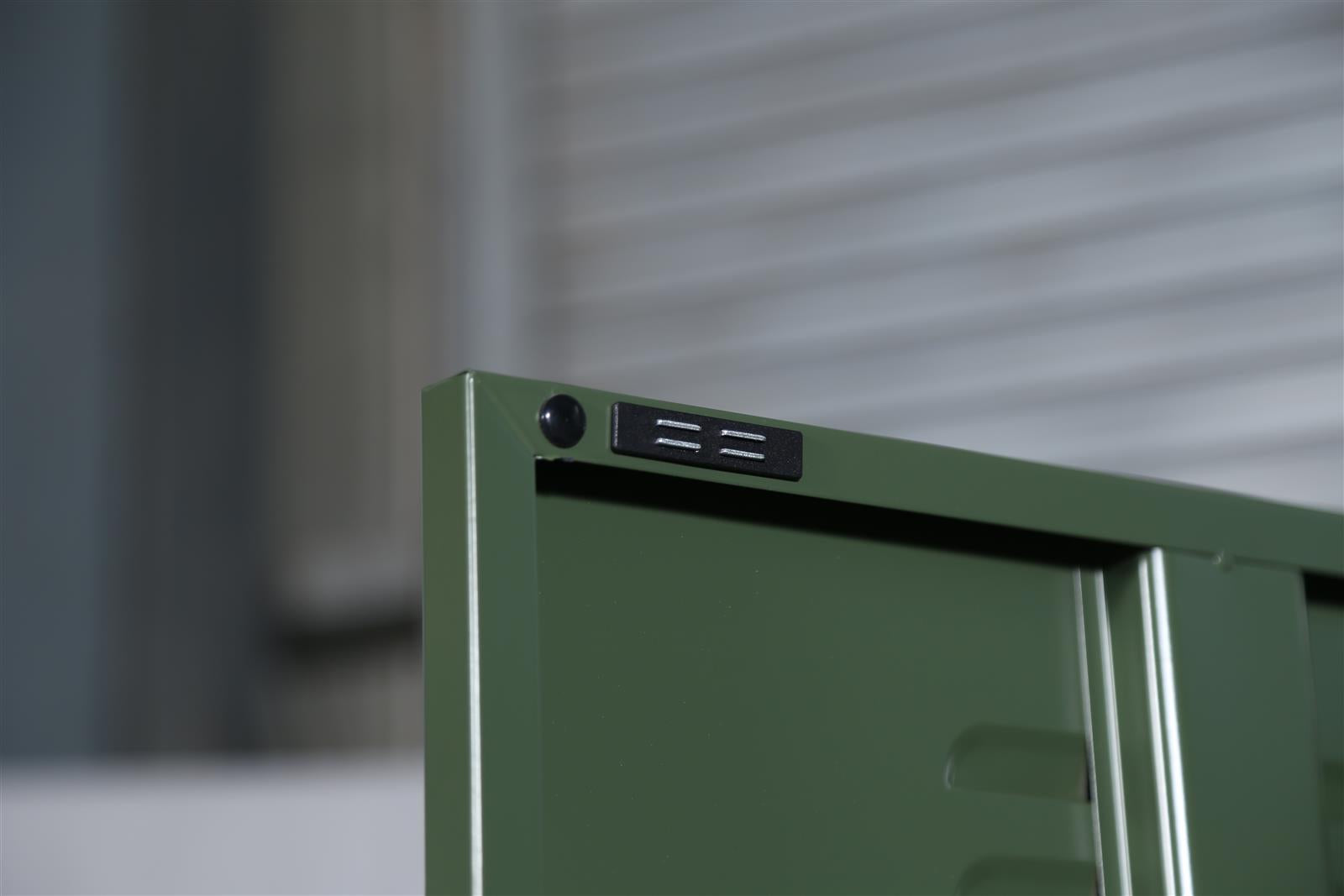 • Load image into Gallery viewer, MaximaVida locker metal wardrobe Finn olive green 90 x 50 x 185 cm - 4 shelves