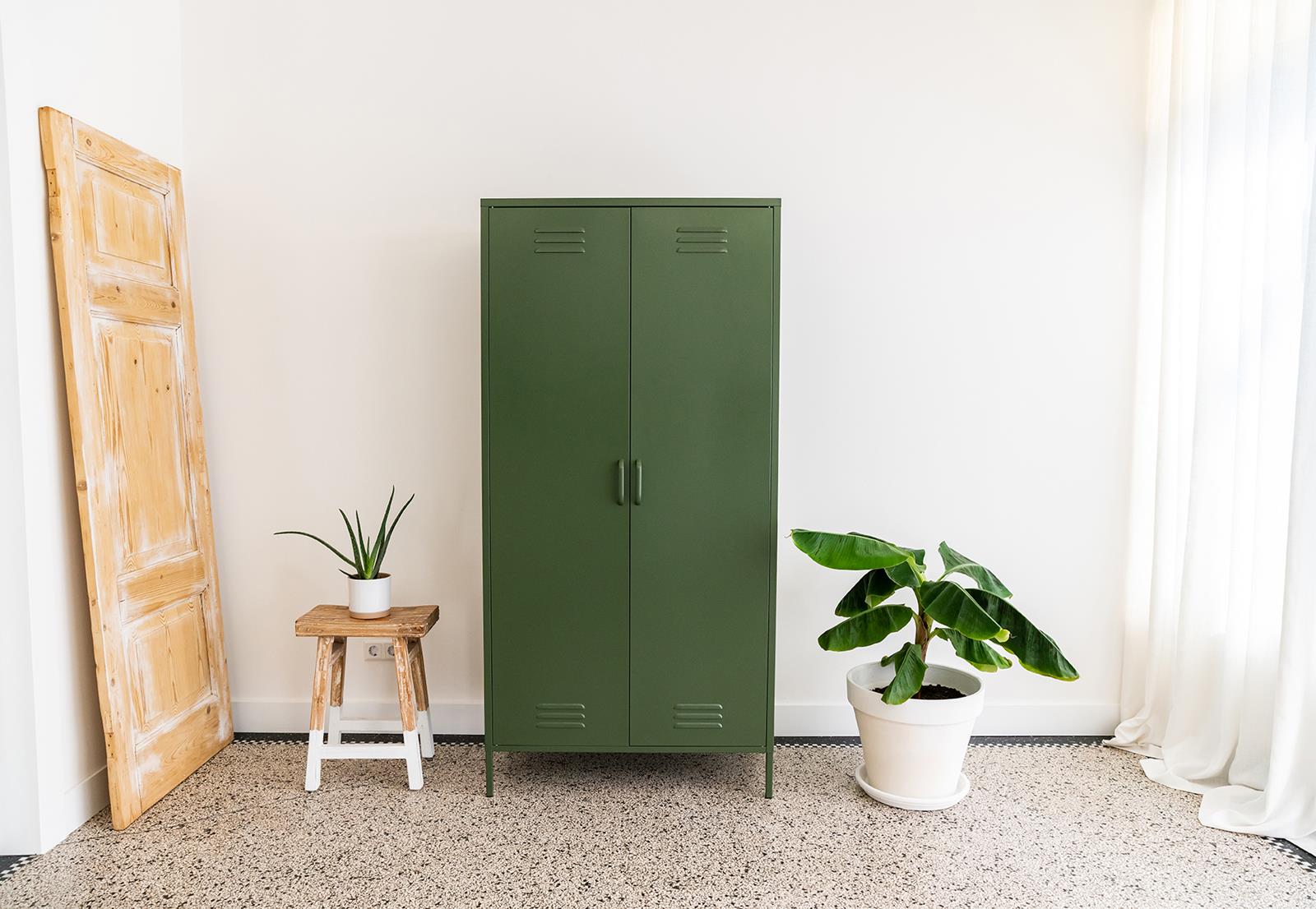 MaximaVida locker metal wardrobe Finn olive green 90 x 50 x 185 cm - 4 shelves