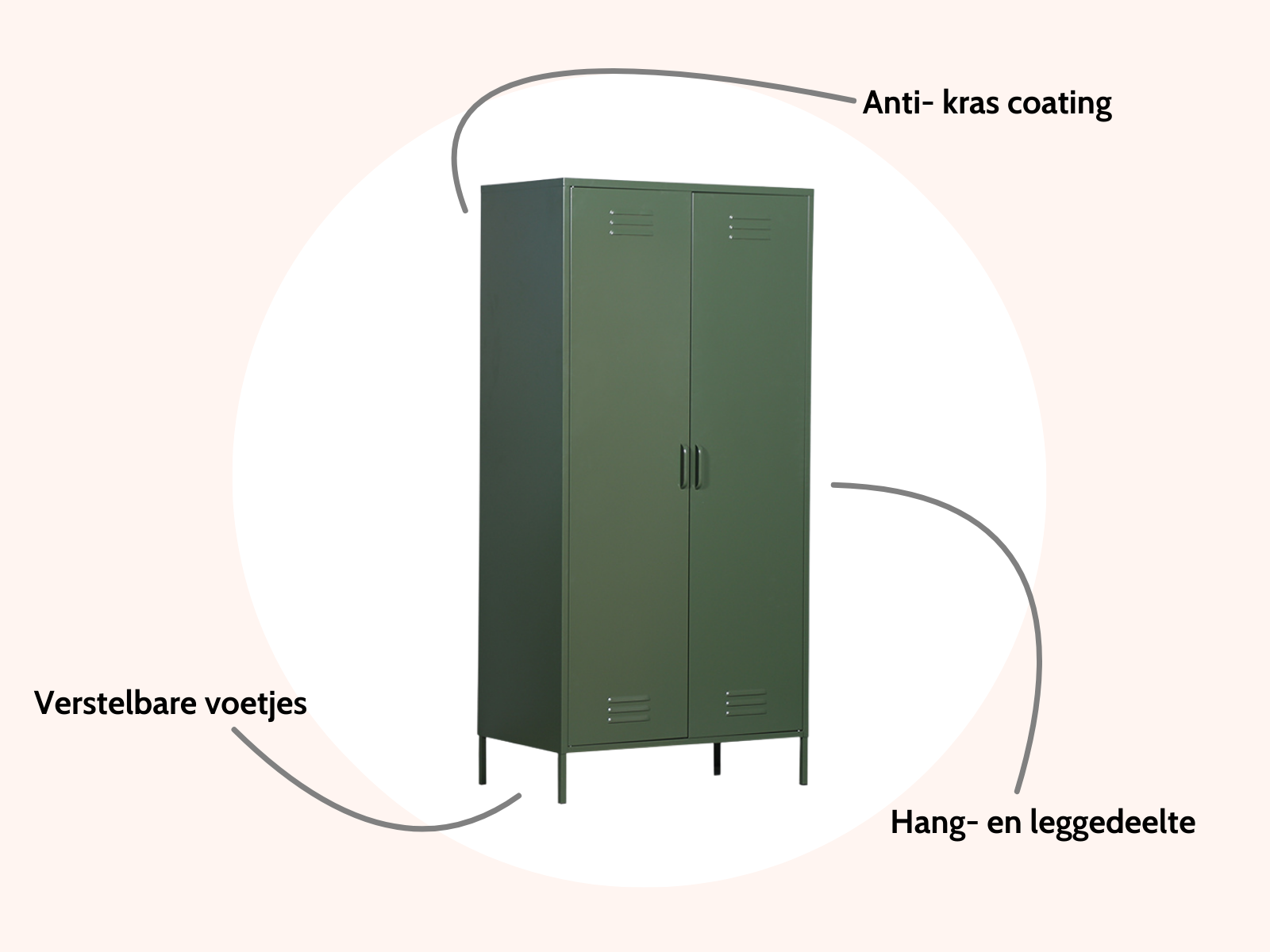 Deze kleding lockerkast wordt geleverd als bouwpakket zodat je hem eenvoudig kunt opbouwen. De deuren zijn voorzien van een handige magneetsluiting.