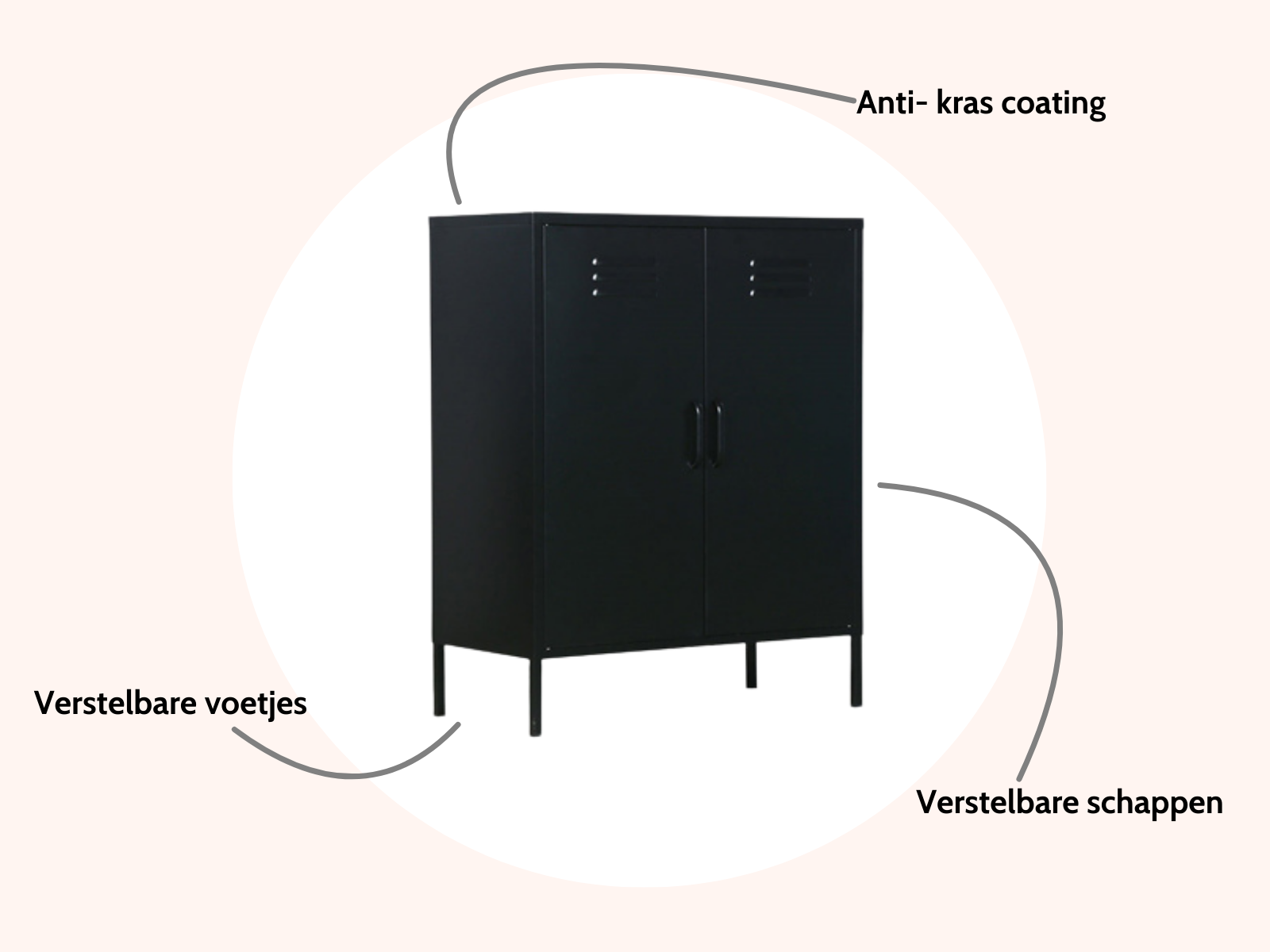 Deze lockerkast wordt geleverd als bouwpakket zodat je hem eenvoudig kunt opbouwen. De deuren zijn voorzien van een handige magneetsluiting.