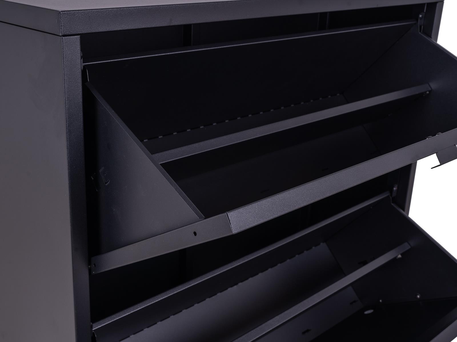 Deze zwarte metalen locker schoenenkast wordt geleverd als bouwpakket.