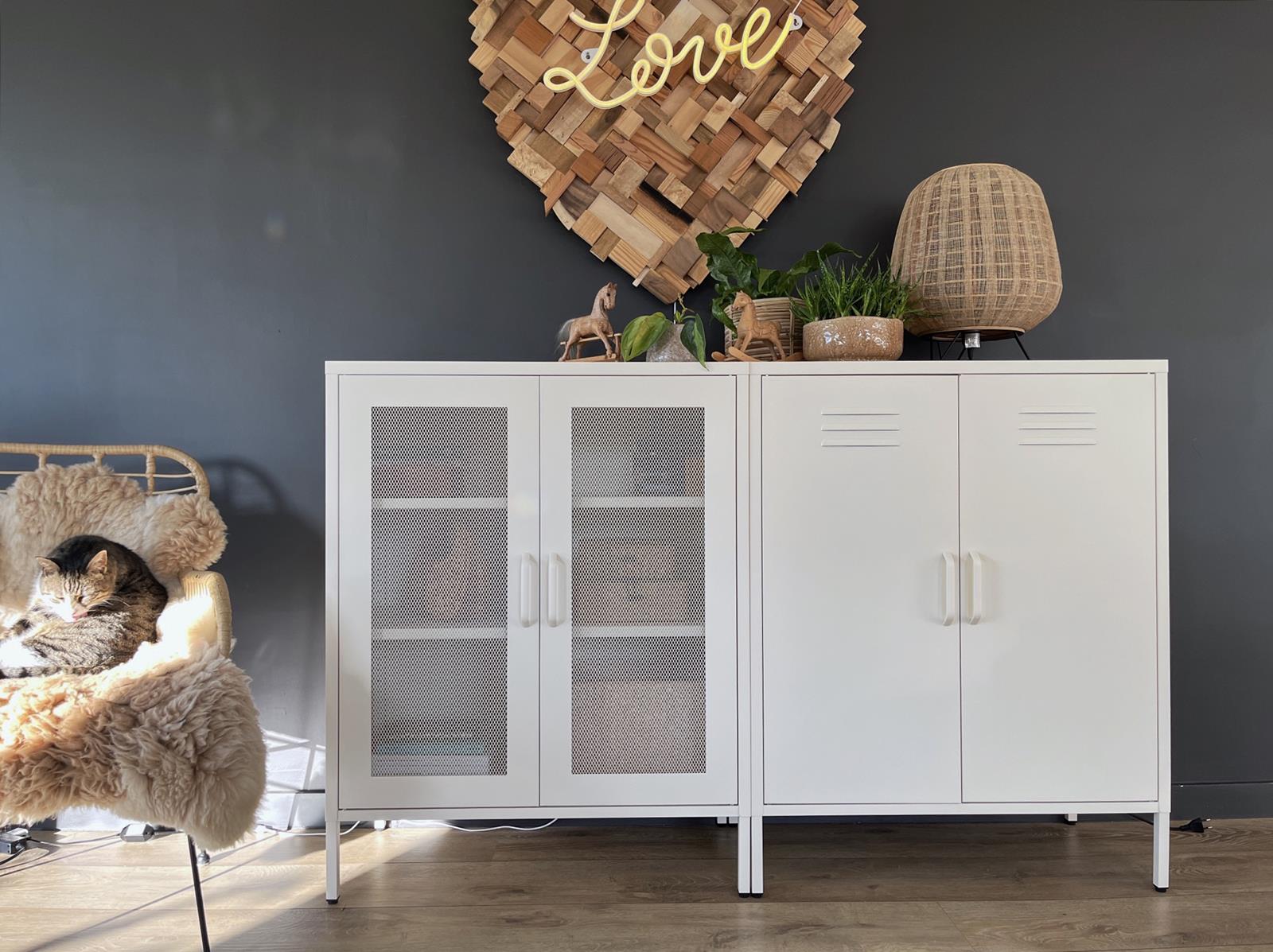 MaximaVida metal locker showcase cabinet Finn 102 x 80 x 40 cm ivory – 2 shelves