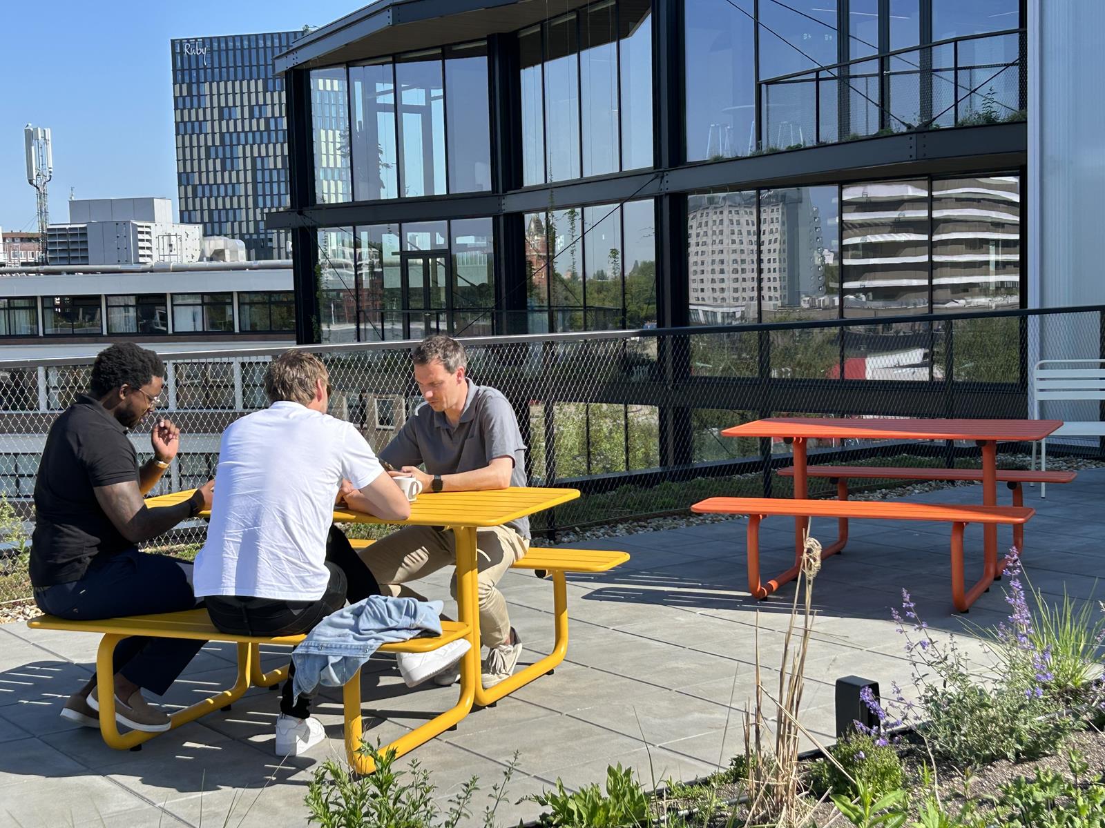 Bestel je een okergele Max picknicktafel 150 cm dan ontvang je drie grote dozen met een afmeting van 154 x 85 x 6 cm en weegt 27 kg, 154 x 40 x 79 cm en weegt 31 kg en 175 x 79 x 17 en weegt 28 kg.