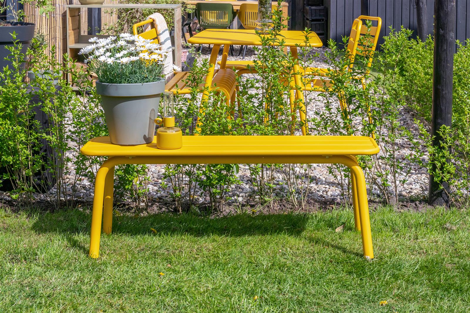 MaximaVida metal garden bench Max 120 cm ochre yellow - without backrest