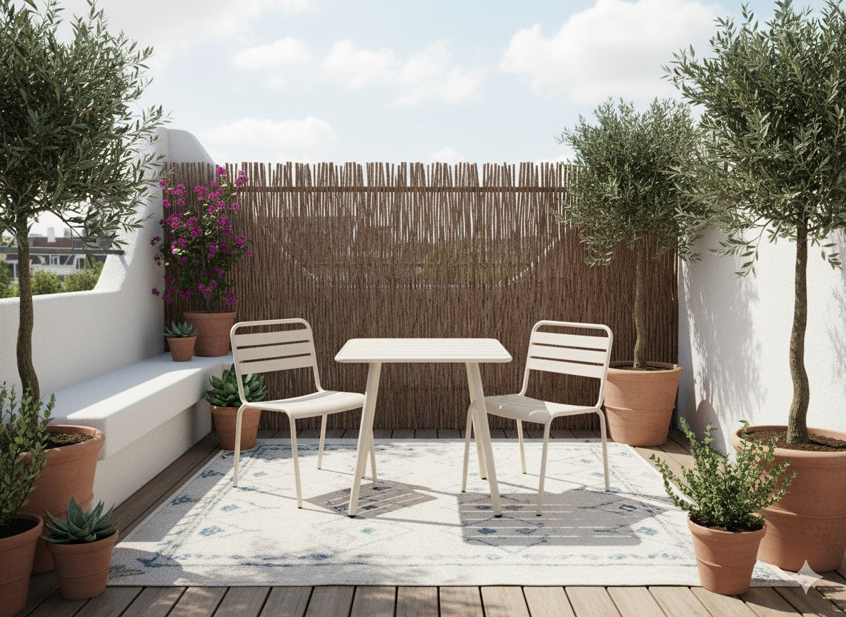 Bij aankoop van metalen buitenmeubelen moet je er rekening mee houden dat je meubelstuk kan gaan roesten. Dit gebeurd vaak alleen op de naden en lasnaden waar water in blijft staan en is helaas niet te voorkomen. Het is op deze punten simpelweg niet mogelijk om de coat- en/of zinklaag optimaal te laten hechten. Met een beetje onderhoud hebben de roestpuntjes echter nauwelijks effect op de levensduur van je metalen buitenmeubel.