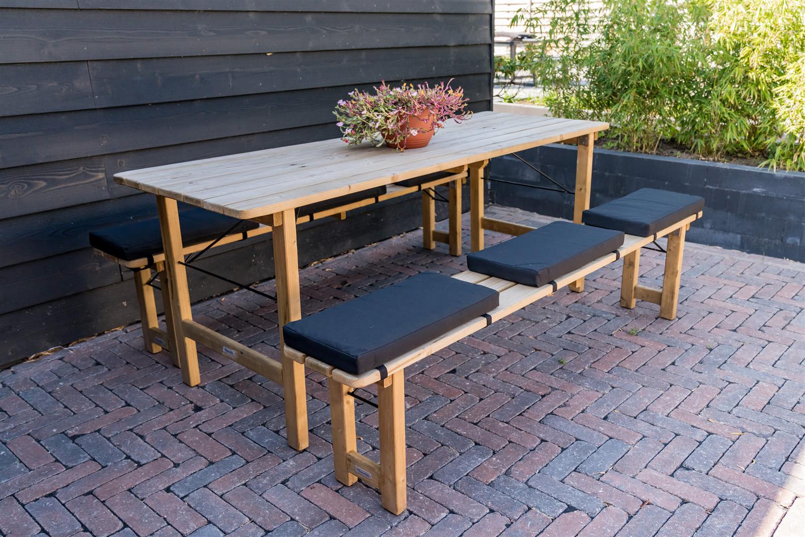 Dit zwarte kussen van 55 cm x 27,5 cm past op alle picknicktafel en bierbank zittingen van 25 cm tot 30 cm breed.