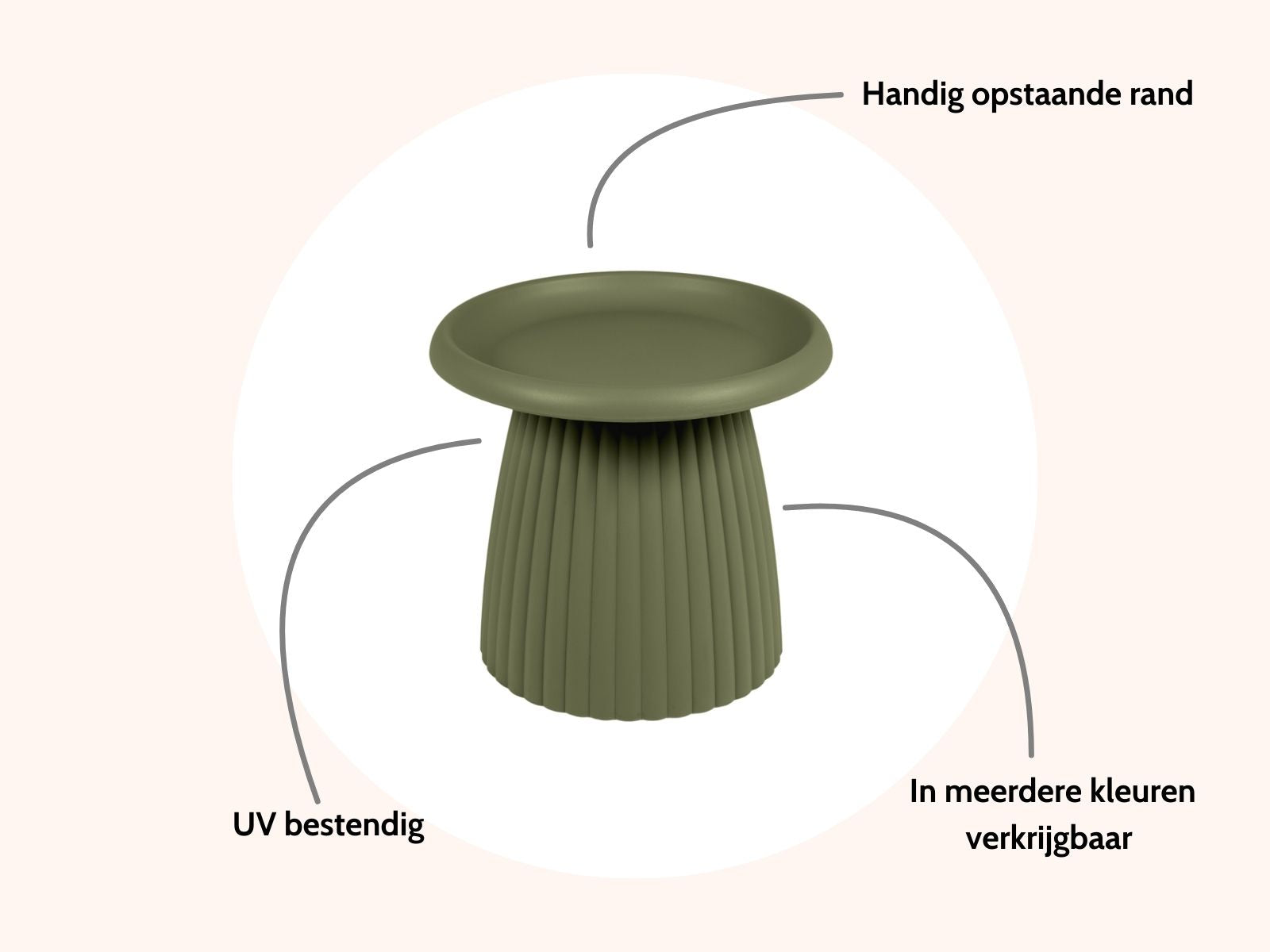 Vermijd langdurige hitte: Zet de tafel niet te dicht bij een vuurkorf of barbecue, want extreme hitte kan het materiaal vervormen.