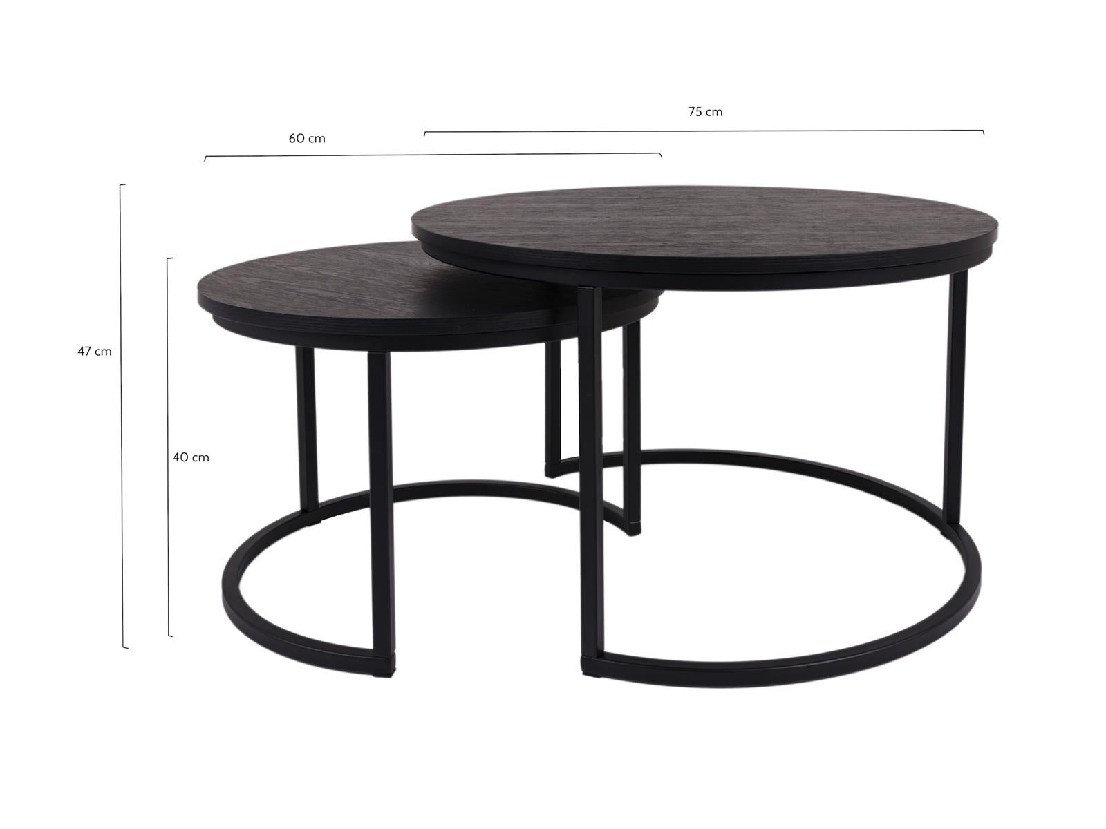 MaximaVida round coffee table set Chicago XL black 75 cm - pinewood veneer
