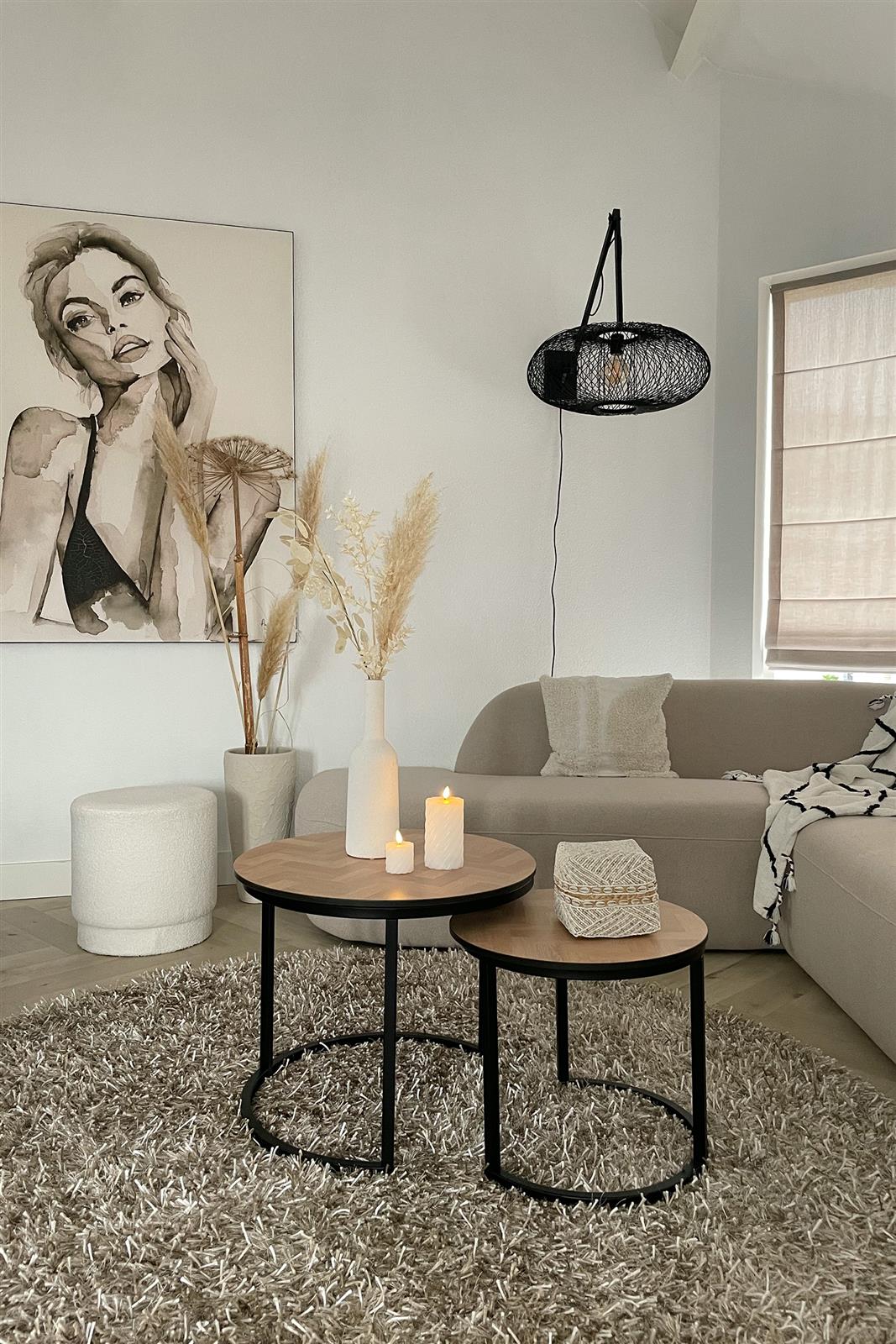 MaximaVida round coffee table set Copenhagen 58 and 45 cm – HPL herringbone look
