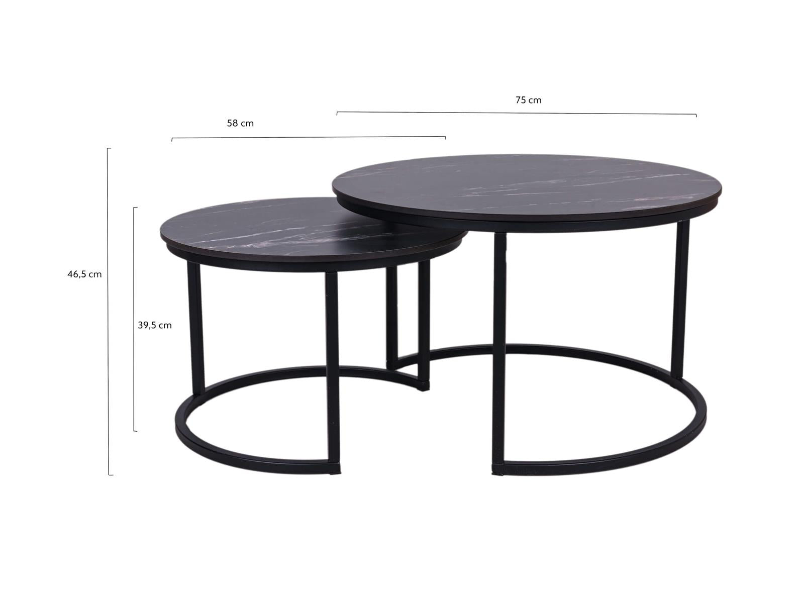 MaximaVida round coffee table set Firenze XL 75 and 58 - black HPL marble look