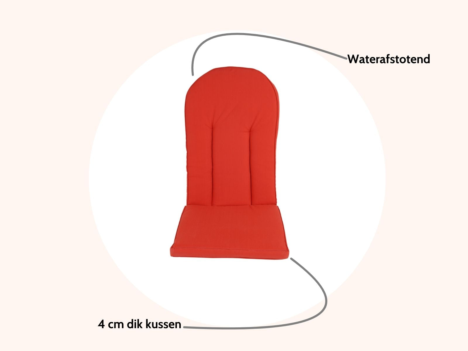 Al onze stoelkussens hebben koordjes aan het kussen, zodat je het kussen aan de rugleuning of zitting kunt bevestigen. Deze modellen zijn voorzien van een rug- en zitgedeelte, de afmeting van de zitting is 50 x 47 cm, het ruggedeelte is 47 x 75 cm.