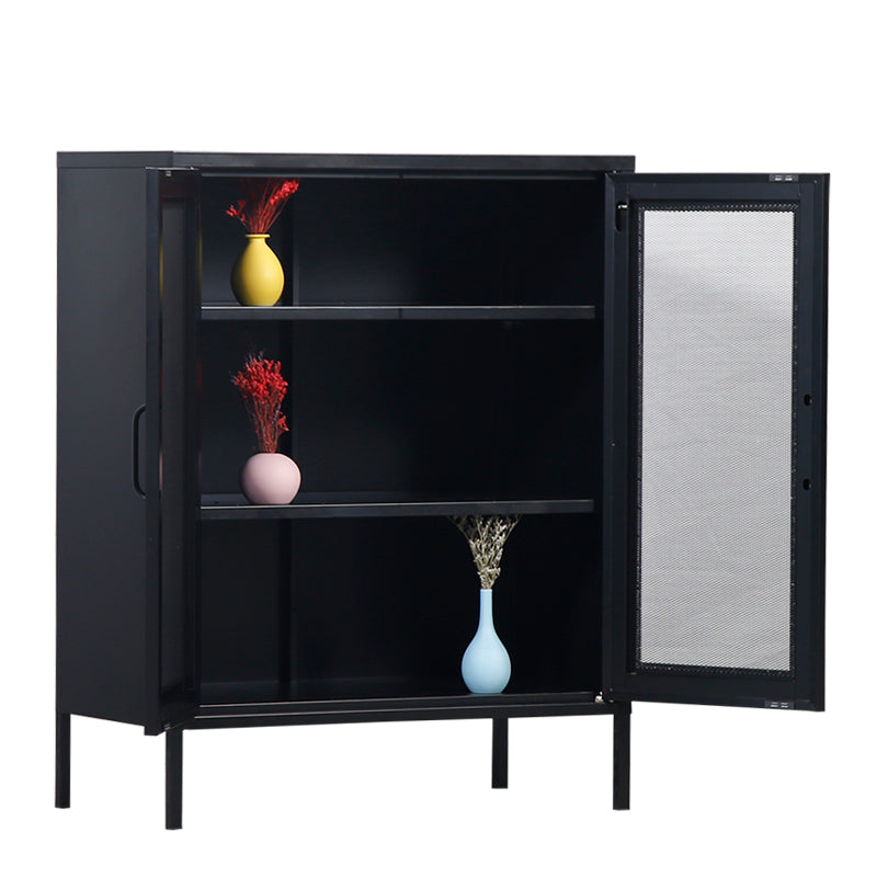 OUTLET MaximaVida metalen locker vitrine kast Finn 100 x 80 x 40 cm zwart - 2 schappen