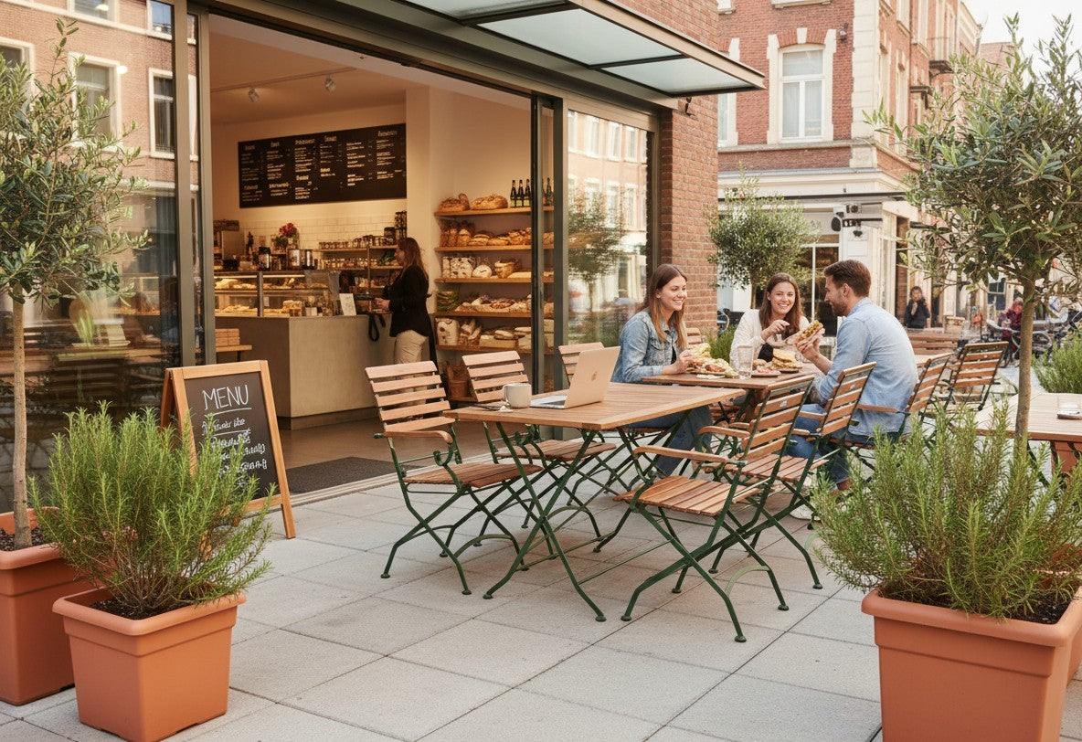 De stoelen hoef je niet op te bouwen. Klap ze open en je kunt zitten. Bij de tafel moet je het onderstel aan het blad monteren met slechts 4 boutjes. De totale montagetijd is ongeveer 10 minuten.